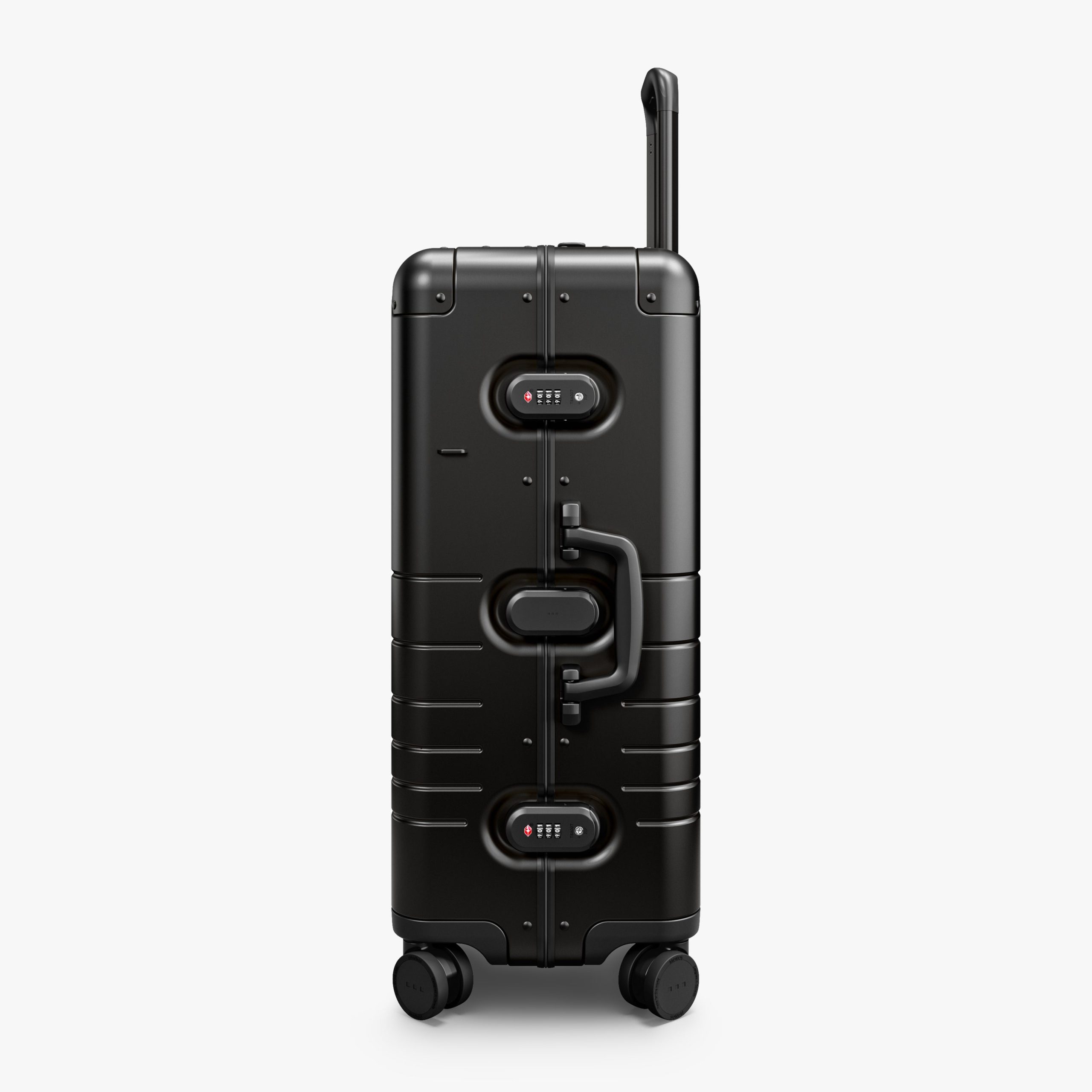 For effortless travel. a zipperless frame with TSA-Accepted latch locks keeps your belongings secure. while a telescopic handle. soft-release side handle. and ergonomic grab handle ensure smooth maneuvering. Inside. the black quilted taffeta lining. embossed with our signature dot pattern. adds a refined touch. while a compression system keeps everything in place. Thoughtful details. like an integrated luggage tag attachment on the side. add convenience to every journey.
