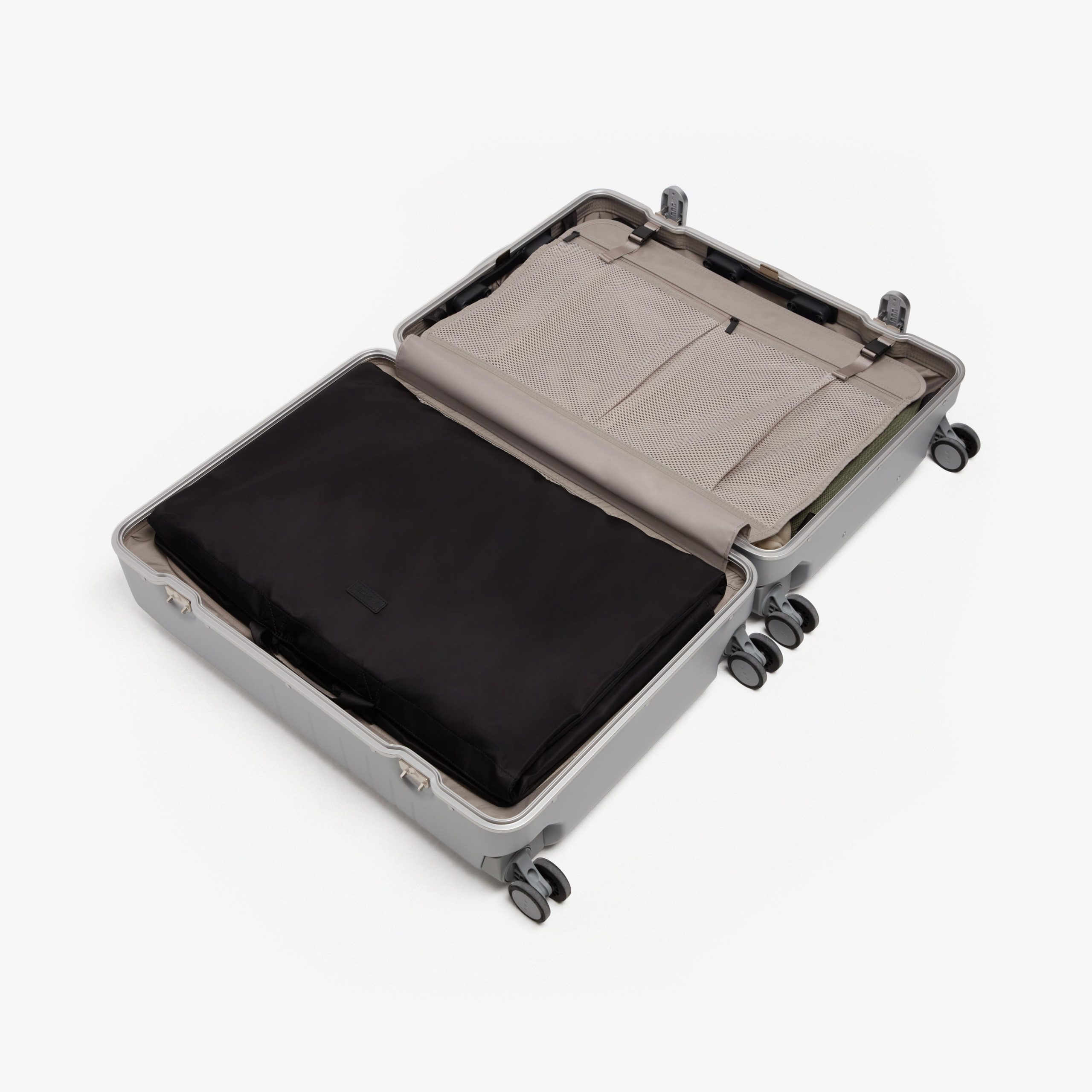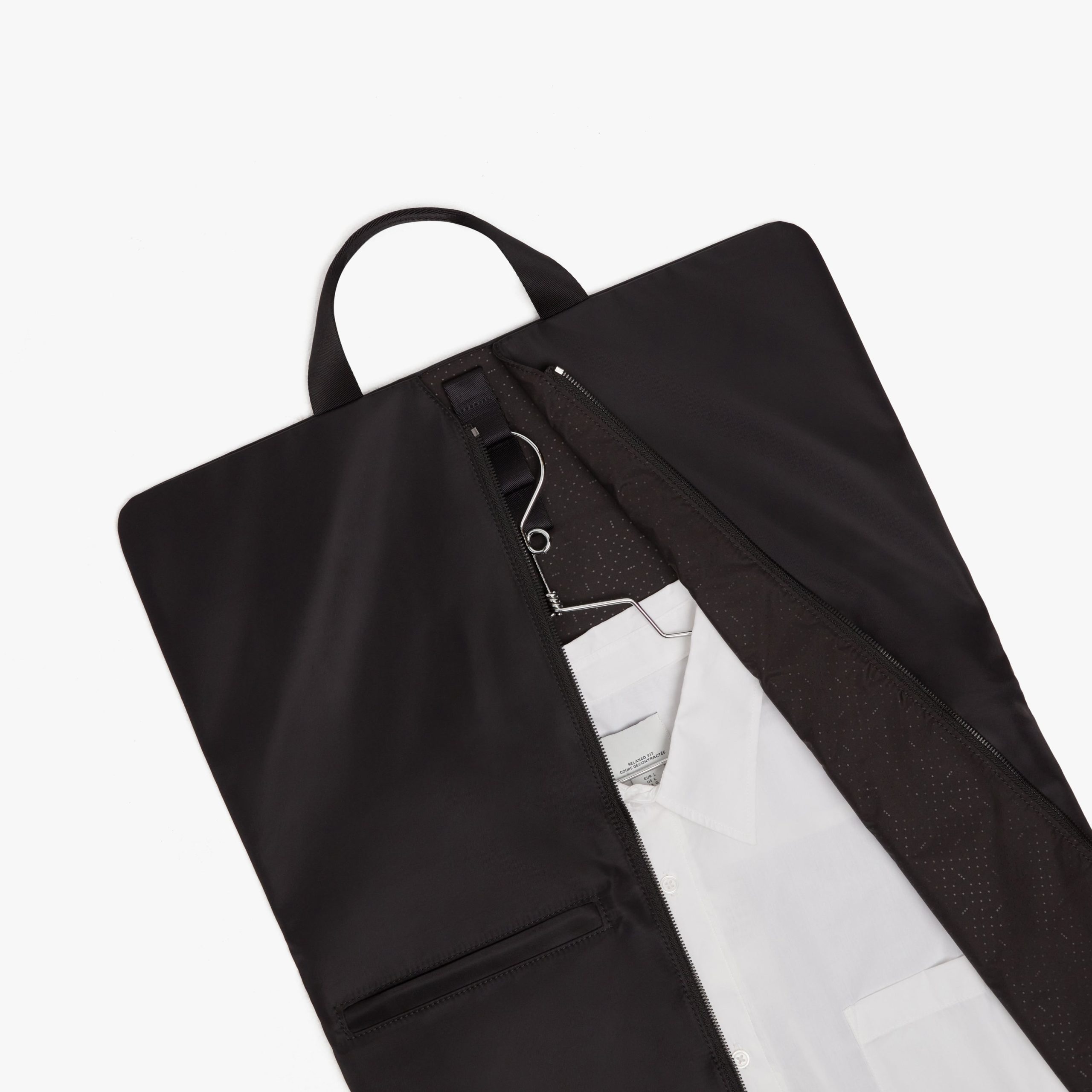 Lightweight and functional. the Garment Sleeve is your companion for carrying dresses. shirts. and suits for business trips. destination travel. and formal events. Designed to minimize wrinkling. the Garment Sleeve easily folds into three parts and can be carried inside of your . Hook loops allow you to pack up to three different pieces. and a handle helps you easily carry and hang. Store accessories or extra items in the small exterior pocket.