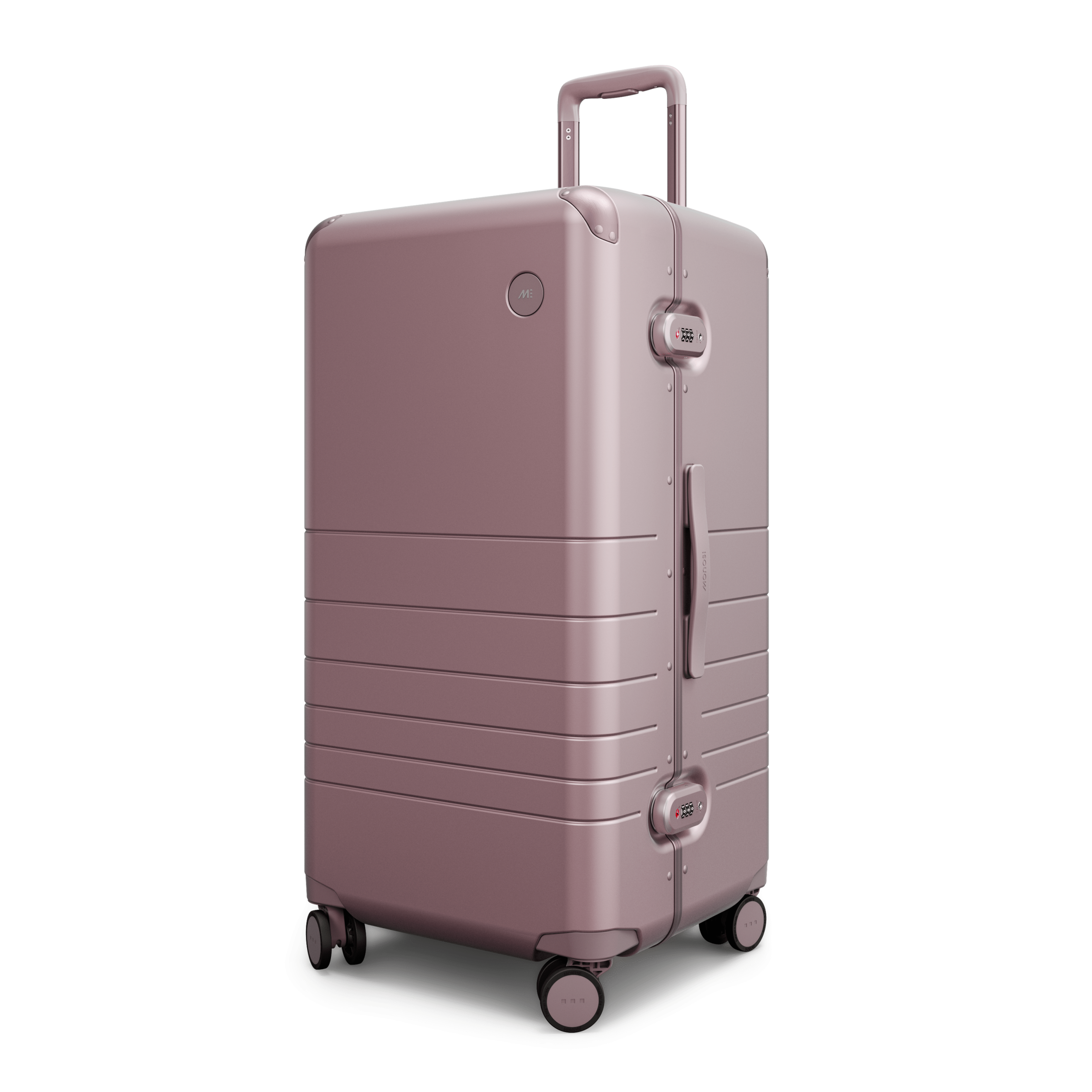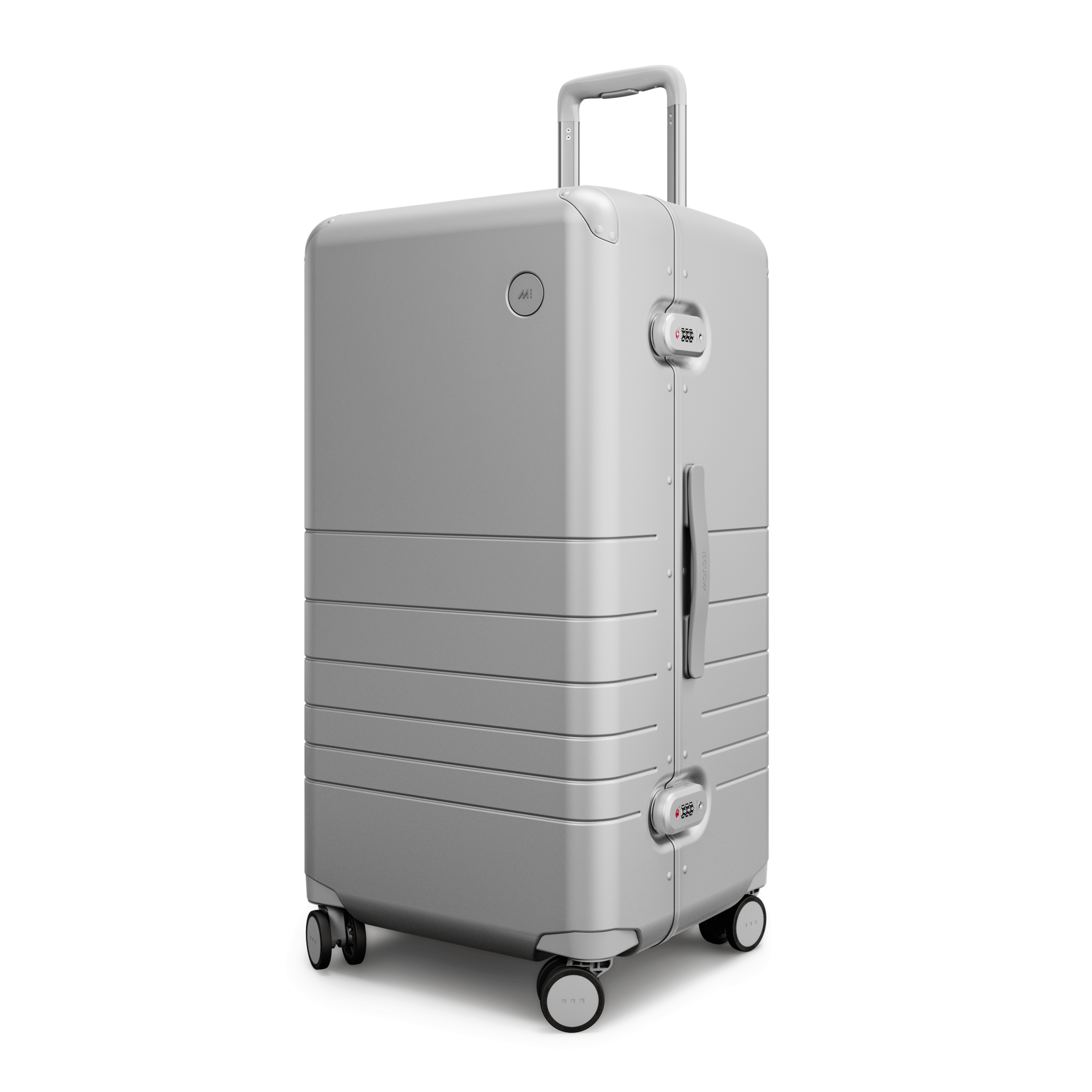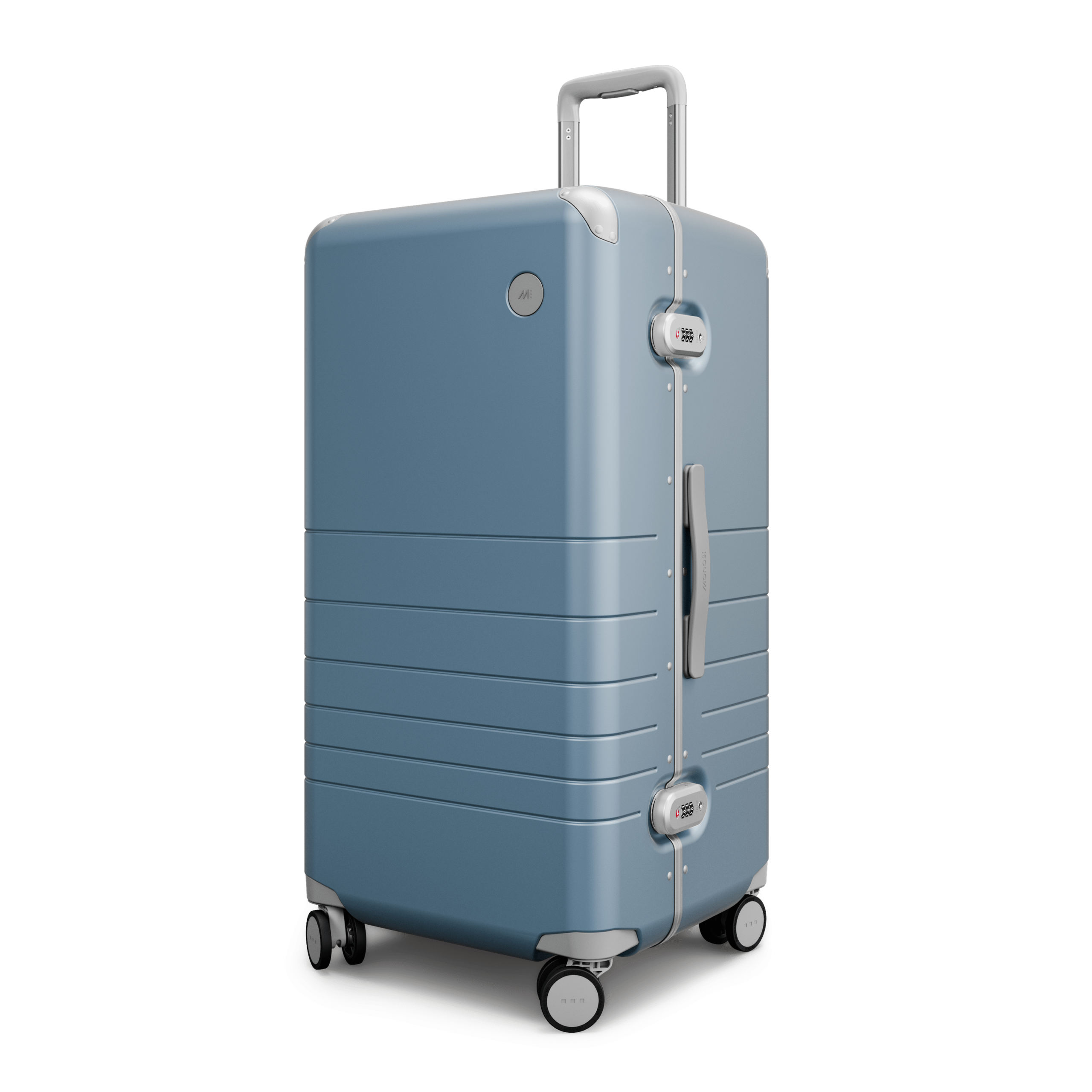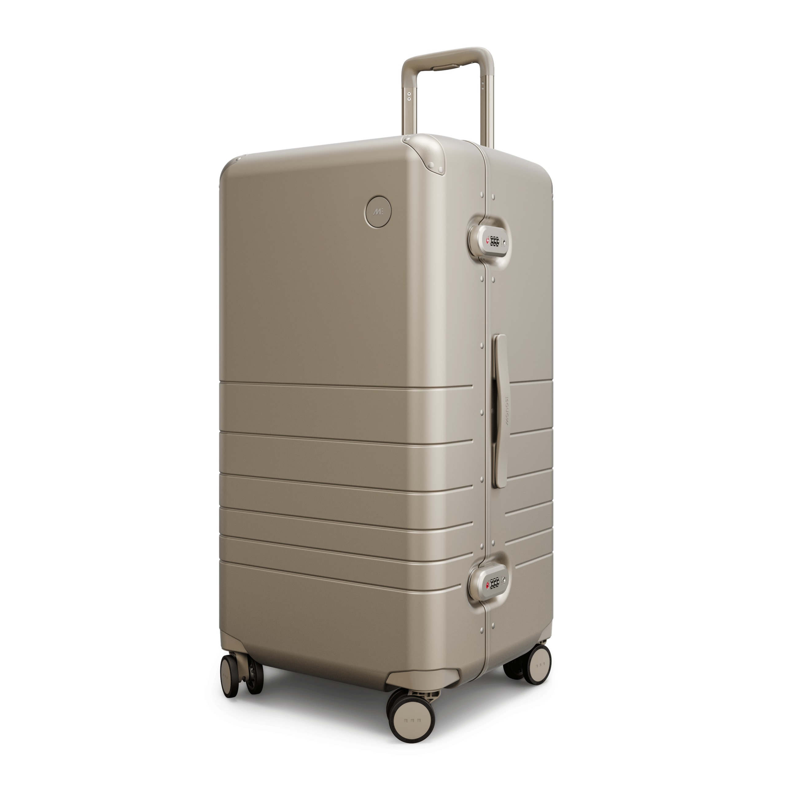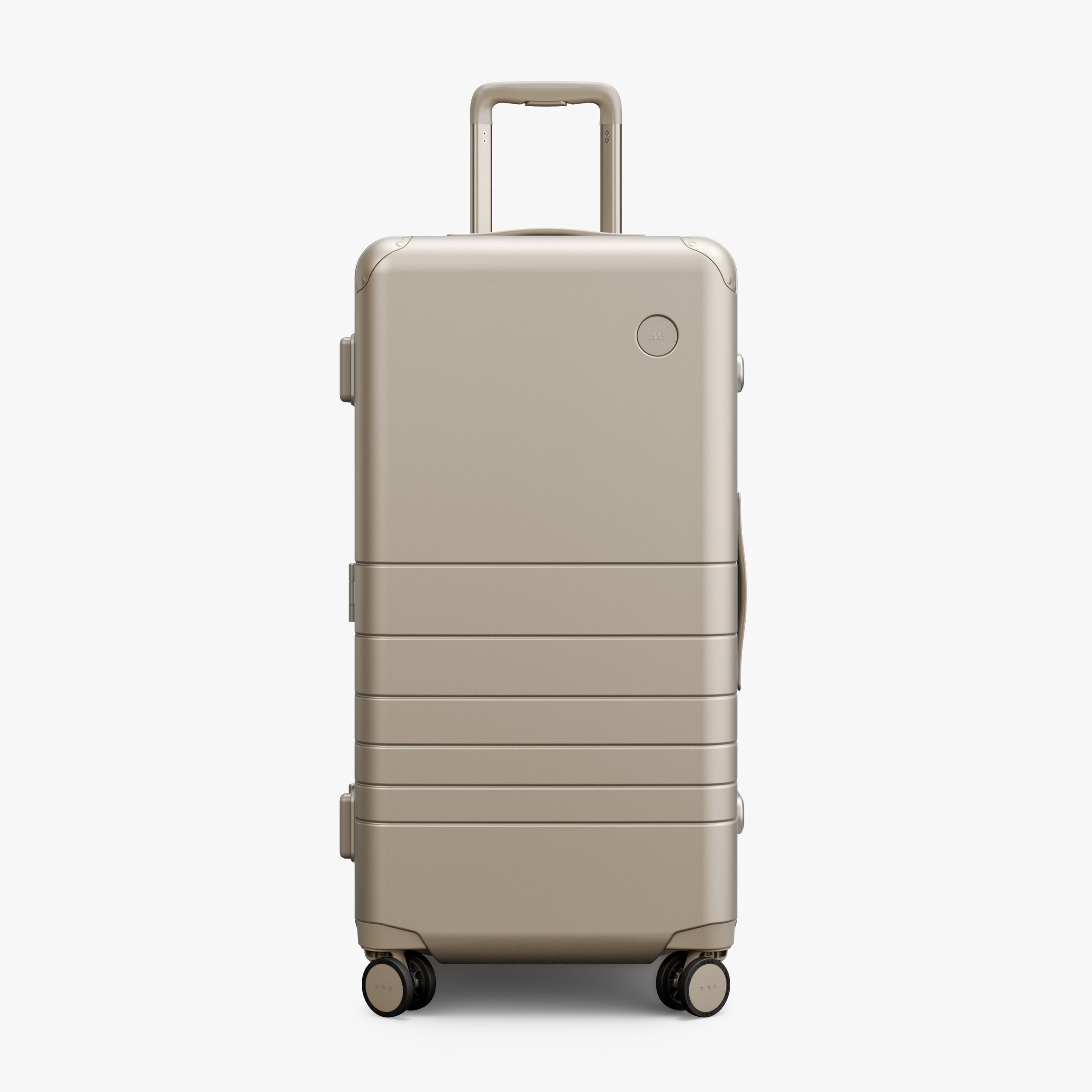 Outfitted with a zipperless aluminum frame. anodized corner guards. unbreakable polycarbonate shell with a refined metallic finish. and all colour-matched components from the ultra-sturdy telescopic handle to the two TSA-Accepted locks and whisper-quiet wheels.