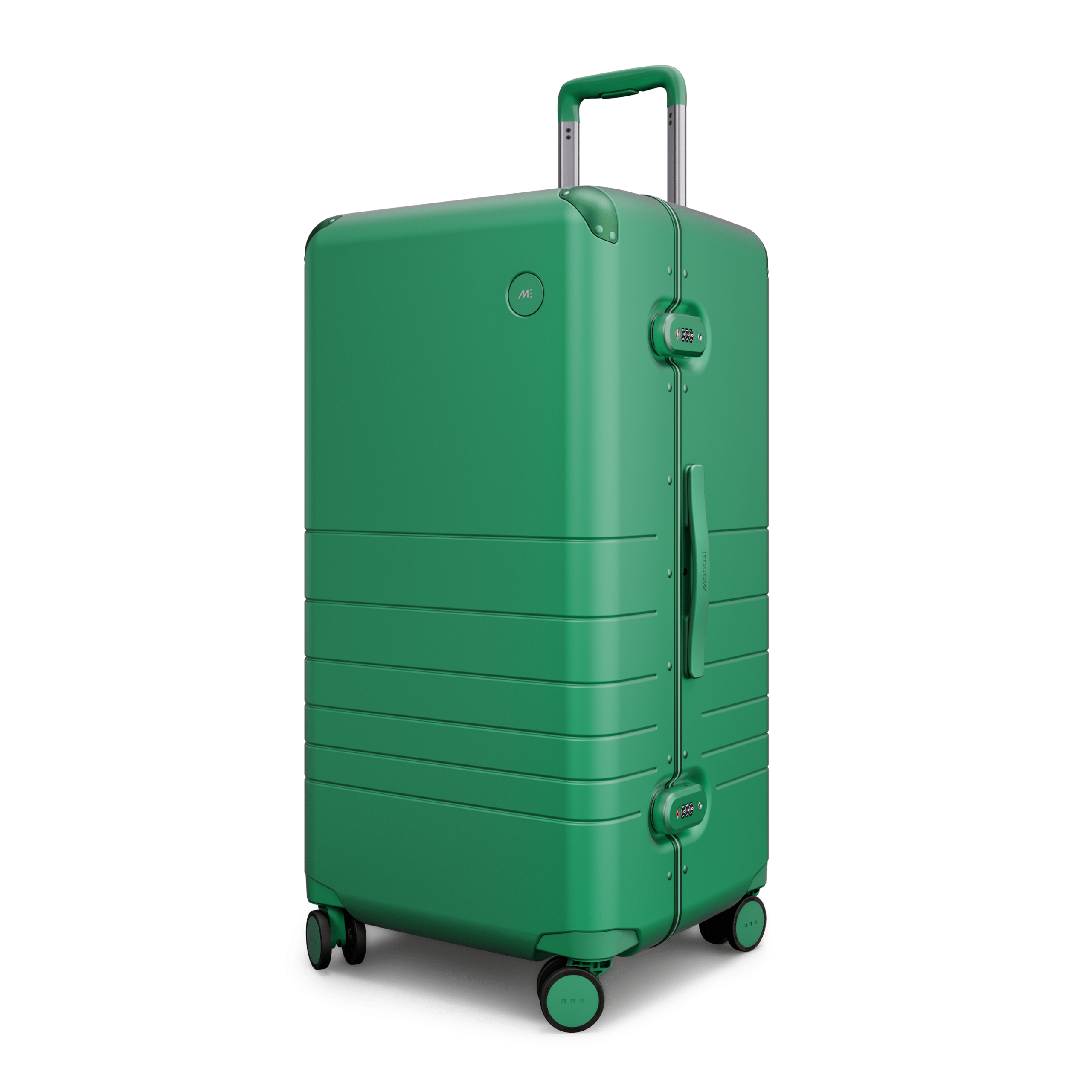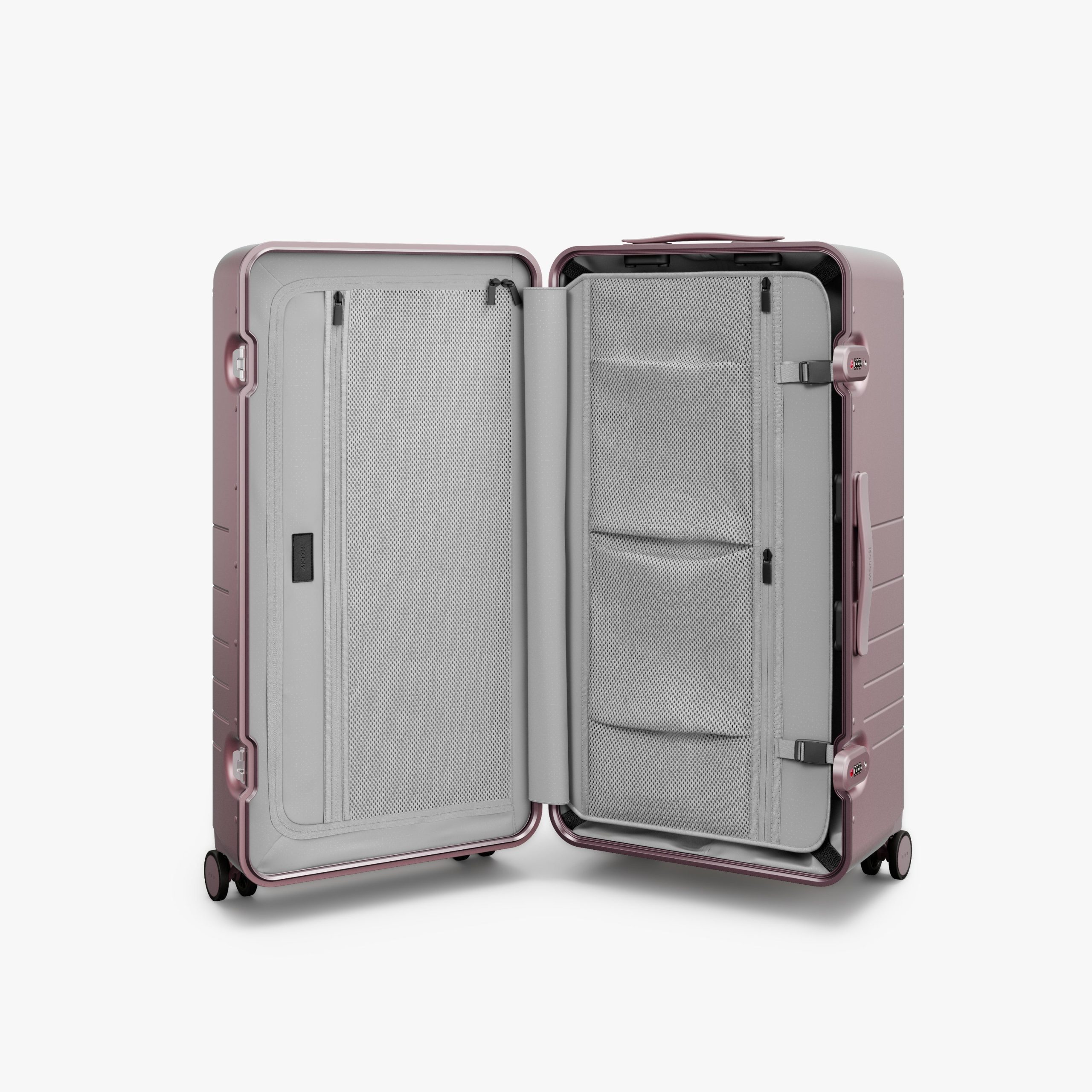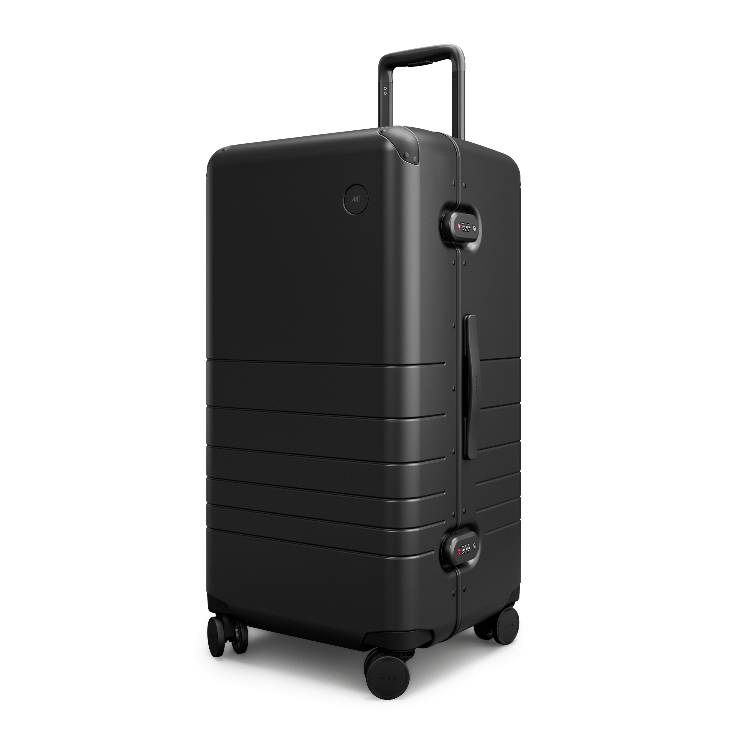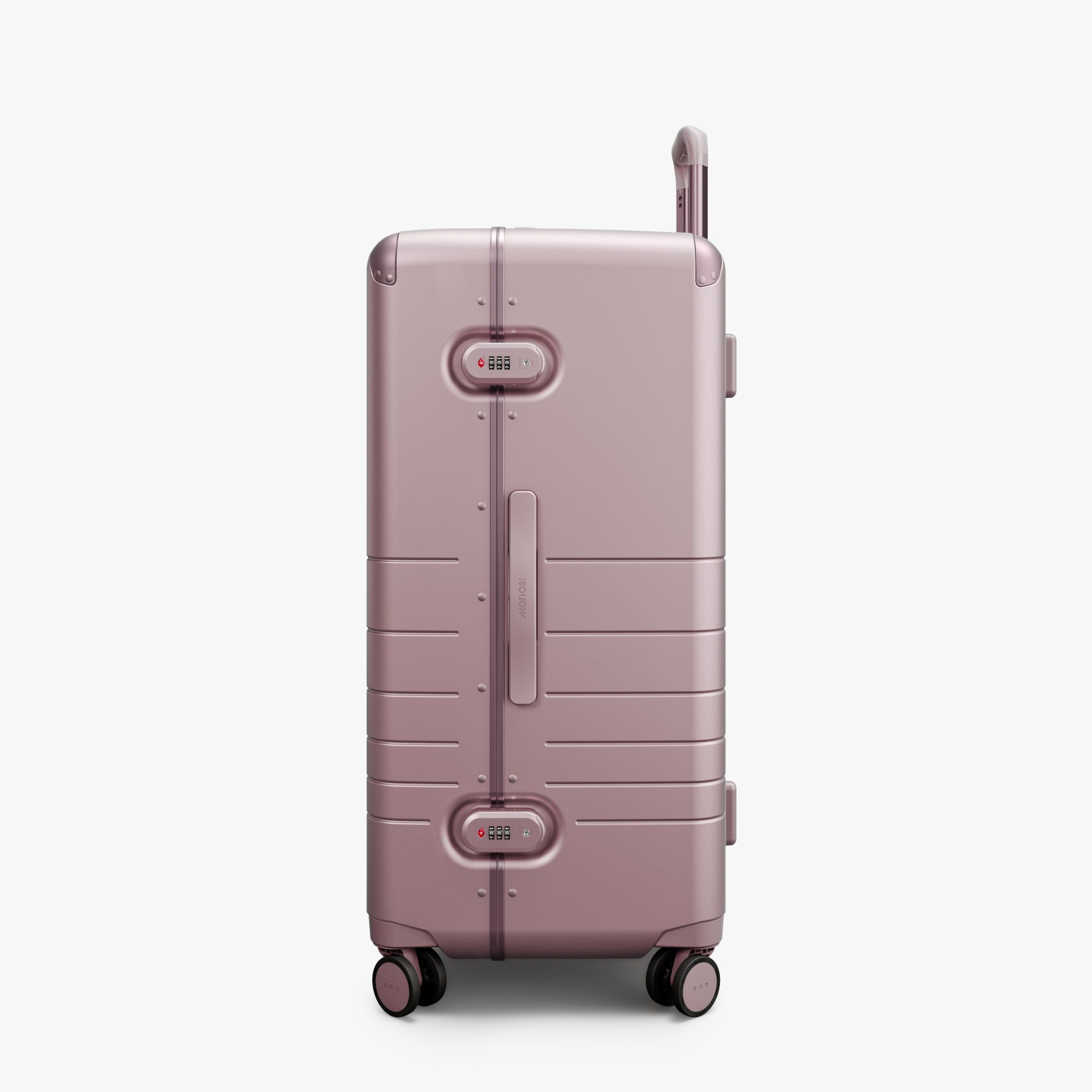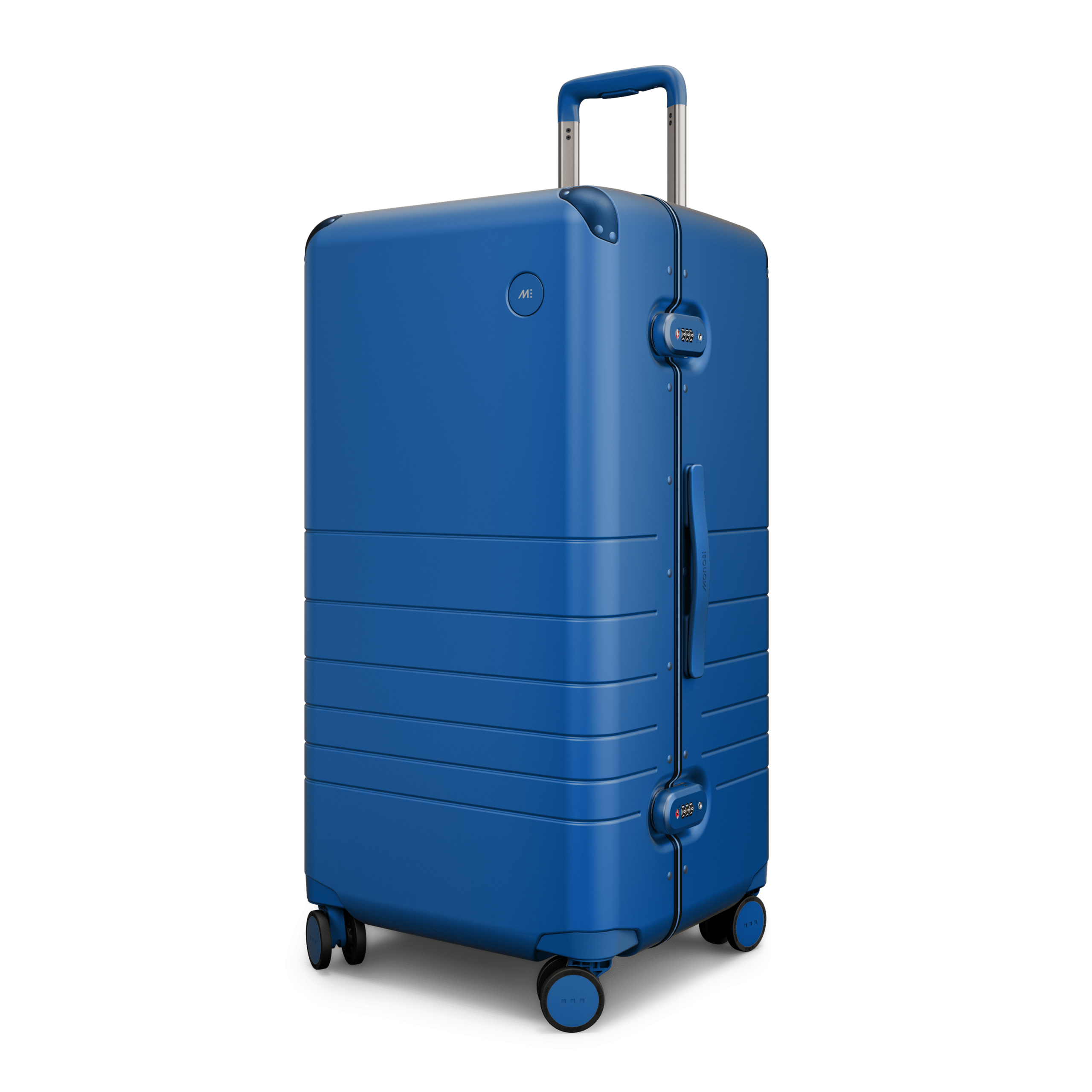Outfitted with a zipperless aluminum frame. anodized corner guards. unbreakable polycarbonate shell with a refined metallic finish. and all colour-matched components from the ultra-sturdy telescopic handle to the two TSA-Accepted locks and whisper-quiet wheels.
