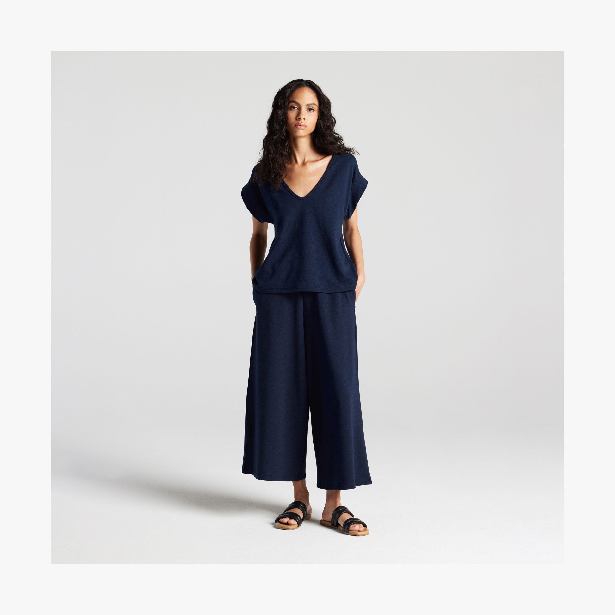 The Sevilla Pants are part of the Everywear collection. our line of classic wardrobe essentials designed for relaxed. comfortable living. Made in Canada.